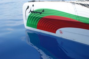 Before winning the adulation of the population of Oman, Mohsin first had to earn the respect of skipper Loik Gallon, Thierry Duprey Du Vorsent, Nick Houchin and Charles Darbyshire. The first stage of his selection began with several gruelling weeks of intensive physical and mental tests in the heat of the Oman desert: ‘It was harder than the Special Forces training’ said Mohsin, who had a career in the Oman’s Royal Navy prior to joining the Oman Sail project. Once he was selected he underwent summer training in the UKSA centre in Cowes before doing the delivery sail on Musandam from the UK to Oman.